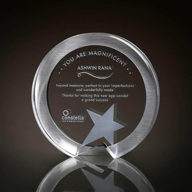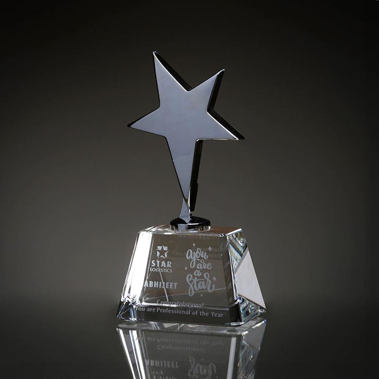 METAL STAR WITH CRYSTAL BASE TROPHY